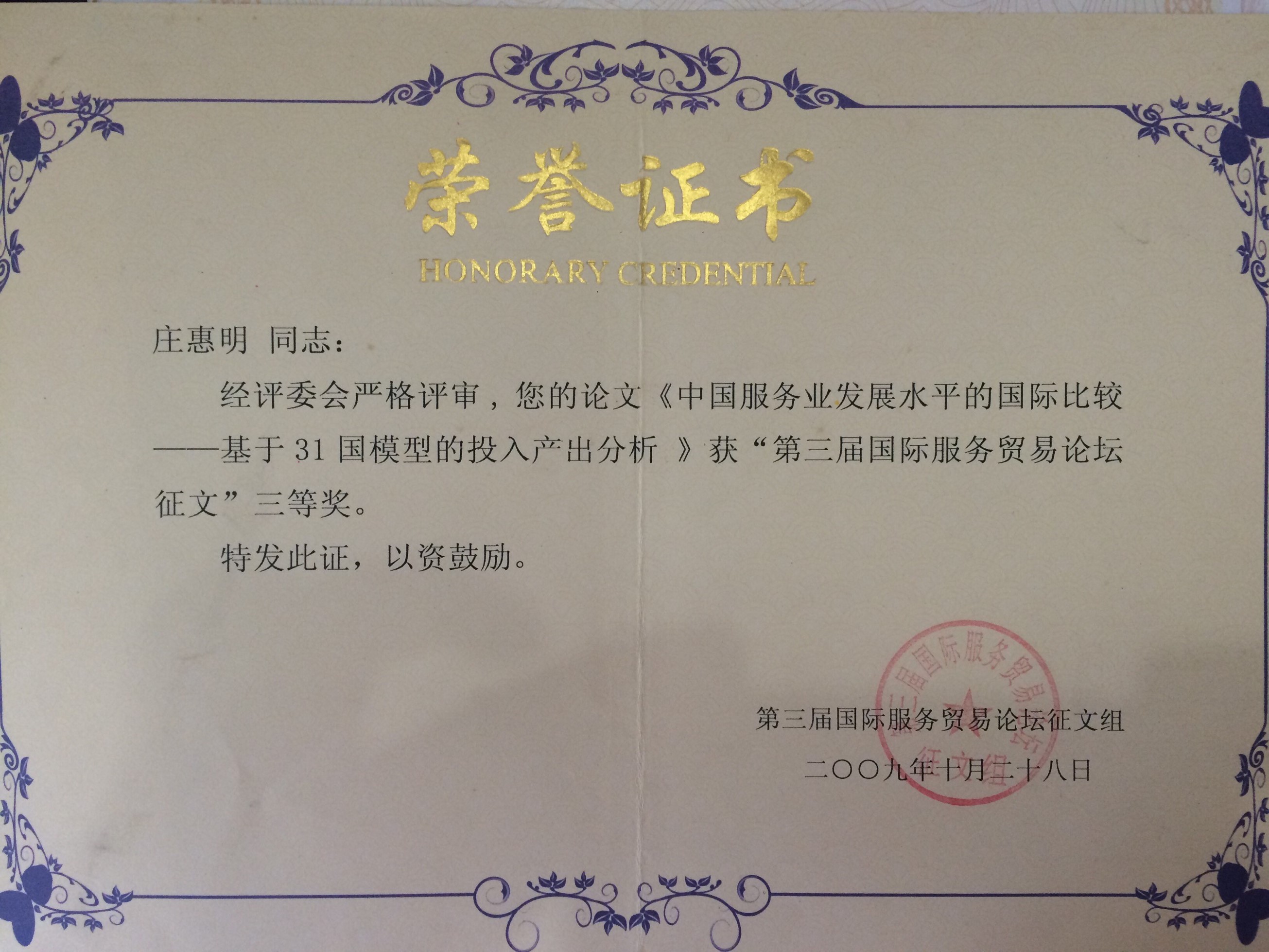 庄惠明-第三届国际服务贸易论坛论文三等奖